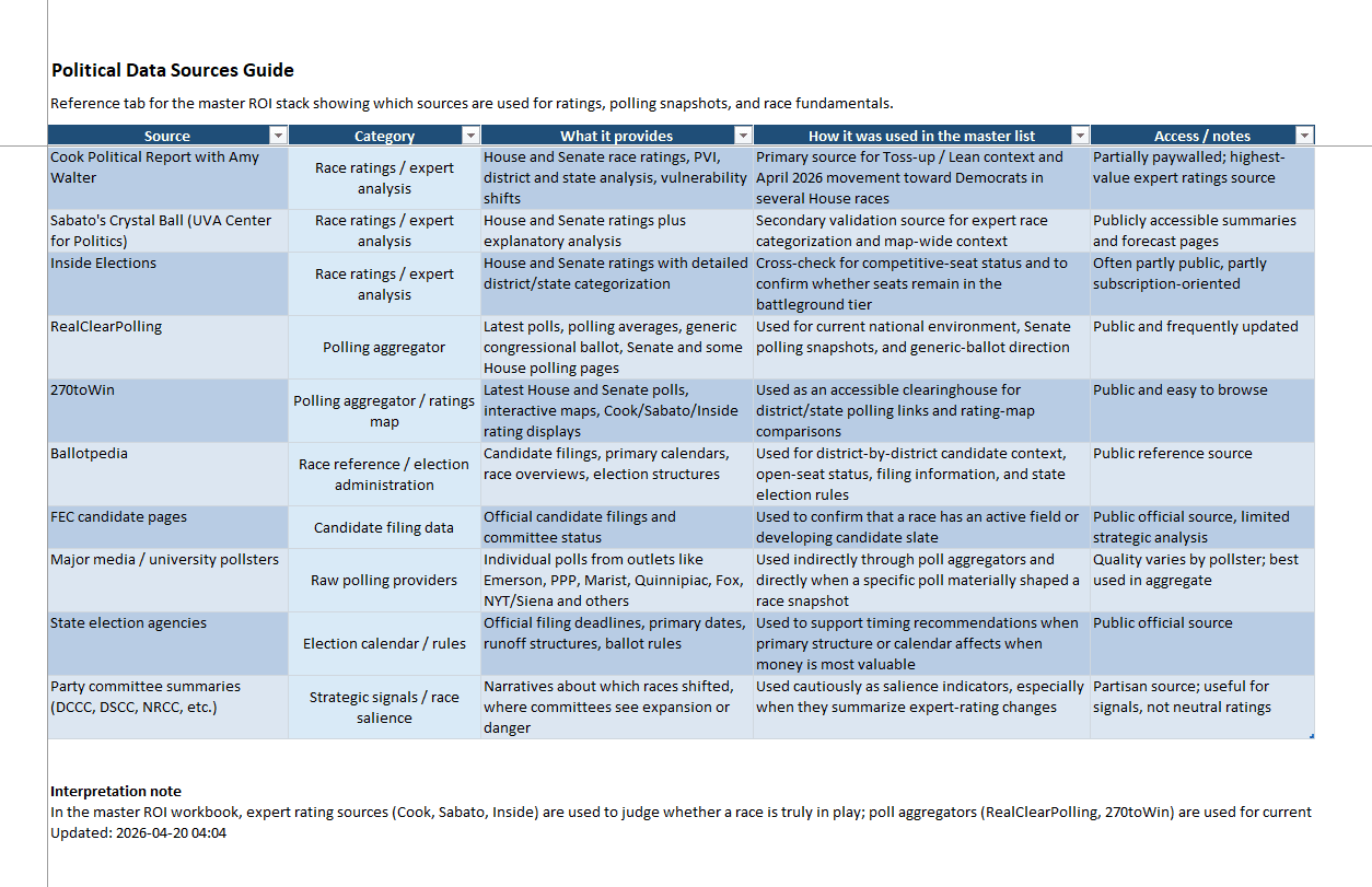 The committee has been using a wide range of research tools to identify those Democratic candidates with the best chance of winning, including legitimate local District polls where available, direct communication with individual campaigns and candidates, national political analytic groups like the Cook Political Report and Real Clear Polling, other appropriate national polling organizations like Emerson, Quinnipiac, CNN, RMG, Ipsos, Morning Consult, FOX News, Reuters, etc. We have been watching where other Democratic support groups are investing their resources